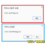 자바스크립트에서 제공하는 메시지창이 alert, confirm, prompt 가 대표적으로 존재합니다. 하지만 프롬프트창은 개발을 진행해오면서 적용한 사례를 본적이 없어서 이번장에서 제외하도록 하겠습니다. 자바스크립트에서 제공하는 alert과 confirm의 화면입니다. ▼ 화면에서 항상 필요로 하는 메시지창입니다. 메시지박스를 ExtJS에서 제공하는 컴포넌트로 생성을 하여 다양하게 출력시켜보도록 해보겠습니다. 'alert' MessageBoxExtJS 강좌 1장에서 연동시 출력해봤던 메시지 박스입니다. 위와같은 내용으로 출력을 시켜보았습니다. ▶ 샘플코드 Ext.onReady(function(){ Ext.Msg.alert("자바스크립트 알림","이것이 ALERT창입니다."); }) ▶ 실행결과 동일하게..